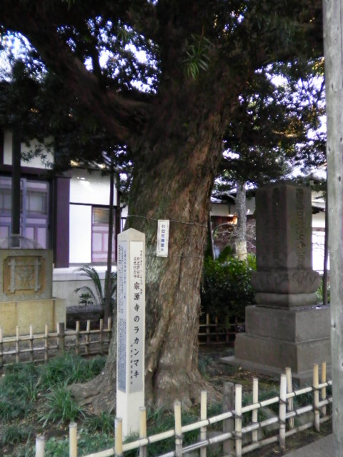 × [PR]上記の広告は3ヶ月以上新規記事投稿のないブログに表示されています。新しい記事を書く事で広告が消えます。 所在地 杉並区下高井戸2-21-2 曹洞宗 嶺玉山 龍泉寺 当寺は、嶺玉山と号する曹洞宗寺院で、本尊は釈迦如来坐像です。 開創年代は、元禄・享保の2度の火災により記録を類焼したため、はっきりしませんが、寺伝によれば、慶長8年(1603)8月江戸麹町(現千代田区紀尾井町)であったと伝えられます。 開山は、過去帳によると、この寺の本寺であった江戸四ッ谷北寺町(現新宿区舟町)の雄峰山全勝寺二世の晋庵瑞迪和尚といい、元和7年(1621)3月に入寂しています。 当寺は、寛永年中(1624~1643)に、江戸麹町から四ッ谷南寺町(現新宿区須賀町)に移転し、更に明治42年(1909)、同地の区画整地に伴い当地へ移転しました。 移転当時この付近は、門前を流れる玉川上水に、春は桜が清流に映え、6月の蛍が飛び交う頃になると杉並でも指折りの名勝地でした。 また、この寺には、「六地蔵」と共に「北向地蔵」と呼ばれる高さ1mのお地蔵様があり、江戸時代から熱病などの難病に、大変霊験あらたかとあつい信仰をあつめていたと伝えられます。 昭和60年(1985)3月 杉並区教育委員会 PR 所在地 杉並区下高井戸3-4-7 日蓮宗 清月山 覚蔵寺 清月山覚蔵寺は日蓮宗の寺で、本尊は十界曼陀羅・宗祖日蓮聖人像です。 当寺はもと真言宗の寺でしたが、慶長年間(1596~1614)に日蓮宗に改宗、中興開山は実成院日相と伝えられています。 当寺に安置されている鬼子母神像は、日蓮聖人の直刻と伝えられています。このことは「江戸名所図会」にも記載されているもので、文永8年(1271)聖人が龍ノ口法難にあわれる前、馬に乗せられ鎌倉の町を引きまわされて刑場に向う途中、一老女からごまのぼた餅を供養され、そのお礼として手渡したものであるといわれています。この像は江戸時代の中頃に、鎌倉の妙法寺から当寺に安置され、それ以降開運鬼子母神として、人々の信仰を集めるようになり、寺運も大いに栄えたといわれています。 境内の日蓮聖人五百遠忌塔は、天明元年(1781)頃に建立されたもので、昭和56年(1981)は聖人700遠忌の年にあたり、それを記念して銅像を建立しています。 また、開山日相聖人塔は350遠忌の年(昭和41年・1966)に建立されたものです。 なお、当寺は大本山池上本門寺の末で、現本堂は昭和31年(1956)に改築されたものです。 昭和56年(1981)2月15日 杉並区教育委員会 所在地 杉並区下高井戸4-2-3 叡昌山 宗源寺 叡昌山宗源寺は、十界諸尊を本尊とする日蓮系の寺です。 当寺の檀家であった有名な地理学者志賀重昻が記した「宗源寺開基碑」によると、当寺開山光伯院日善の祖先は畠山重忠の一族江戸遠江守太郎判官重永の孫で甲斐国(山梨県)吉田郷に住した吉田宗利であち、宗利が法華宗に帰依して法名「宗源」と称したのにちなみ、末孫の日善がこの地に一寺を開いて寺名としたと伝えます。そして、その時期は慶長(1596~1614)初年の頃とされています。 境内の不動堂は、もとこの近くにあった修験道の本覚院(明治5年〔1872〕廃寺)のものでrしたが、明治44年(1911)に現在地に移し、昭和42年(1967)に改築したものです。 なお、この不動堂はかつて高台にあったため、「高井堂」と呼ばれ、それが高井戸という地名の起源になったとする説もあります。 当寺蔵の文化財としては、南北朝初期の板碑や滝沢求馬(1713没)の筆になる釈迦涅槃図が保存されています。 昭和55年(1980)2月20日 杉並区教育委員会 宗源寺境内には『宗源寺のラカンマキ』があります。 所在地 杉並区下高井戸4-2-3 (宗源寺) 杉並区指定天然記念物 宗源寺のラカンマキ 成7年(1995)11月29日指定 寺の本堂南側にあるラカンマキは胸高周囲2m15cm、樹高(目測)9m、樹齢350年と推定されています。ラカンマキは雌雄異株の常緑樹で、羅漢と呼ばれる理由は果実と花床を羅漢の首と胴に見たてた、あるいは種子の形をまだ仏になりきらない羅漢にたとえたとも言われています。当寺のラカンマキは雄株で葉は細長く中央の脈は両面に出て、樹姿は南の方に広がる臥竜型です。樹姿も優れ開創当時に植えられたと伝えられ、太さは都内区部のものとしては群を抜き大変貴重なものです。 杉並区教育委員会 |